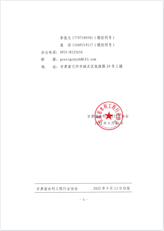 【信用評價】甘肅省水利工程行業(yè)協(xié)會關于開展全省水利建設市場主體信用評價工作的通知特別提示:信用評價申報系統(tǒng)自2022年9月15日0時正式啟動至2022年10月15日24時關閉,為了便于協(xié)會與參評單位溝通銜接,協(xié)會建立六類(施工、監(jiān)理、設計、檢測、招標代理、制造供貨)微信群,請各參評單位按照各自的類別聯(lián)系協(xié)會工作人員入群。